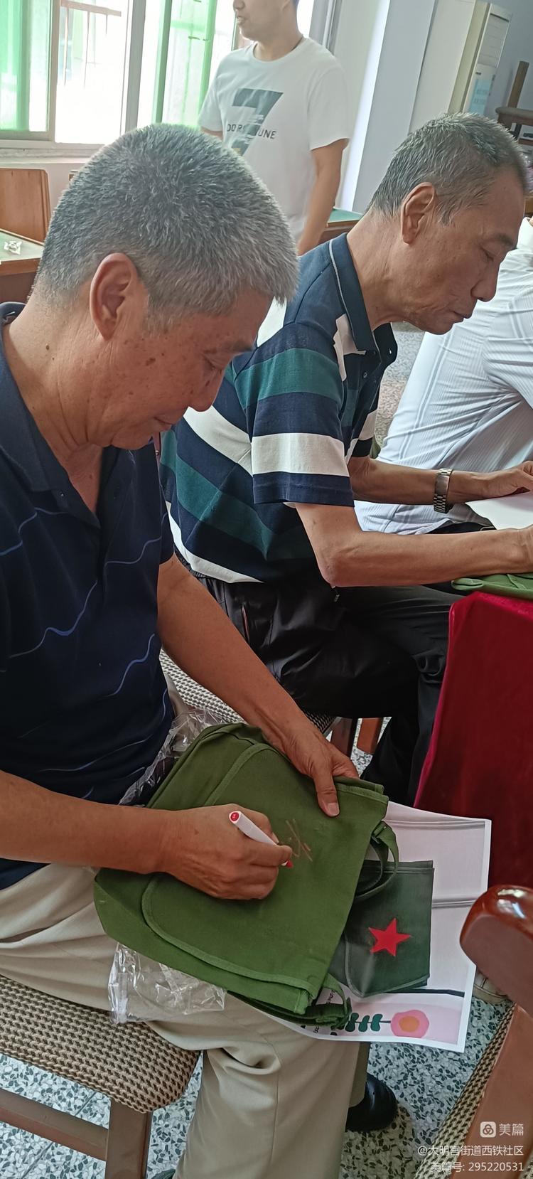 会上,通过观看纪录片、分享当兵故事、唱经典军歌、DIY红军挎包等形式邀请退役军人共议往事,随后社区干部为有奖问答环节积极参与的人员颁发奖品并送上节日的祝福。