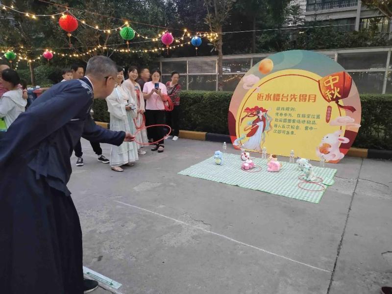 同时,太华路社区还组织开展了“月满赴如园 雅韵赏中秋”游园活动,为居民提前送上节日祝福。在手工制作工坊区,孩子们在家长的指导下制作花灯;游戏互动区中,居民体验“欢乐套圈”“明月投壶”等。