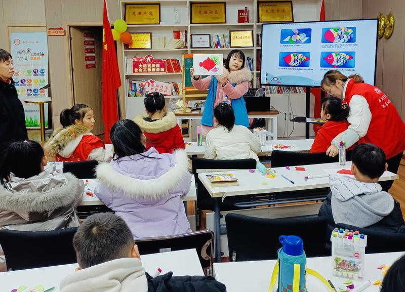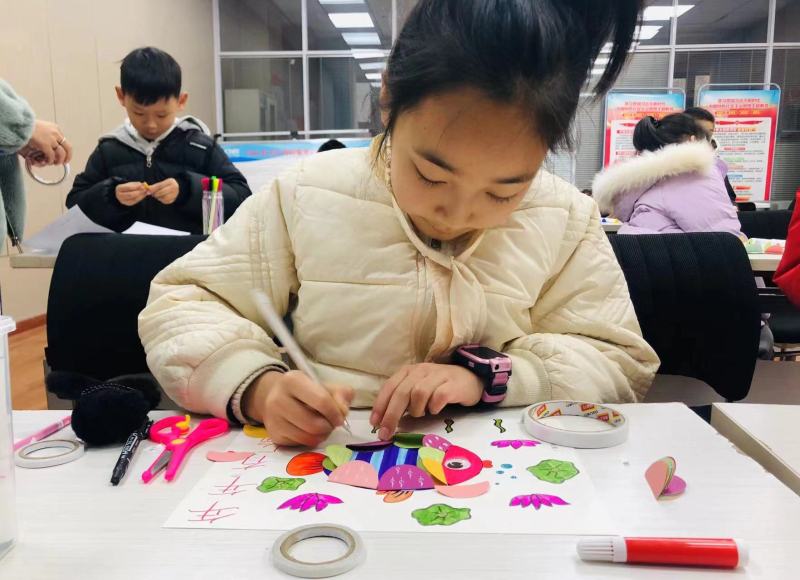2月2日,未央区大明宫街道龙湖曼蒂苑社区新时代文明实践站举办寒假“年年有‘鱼’”创意美术活动,让小朋友提前感受到春节的浓厚氛围。