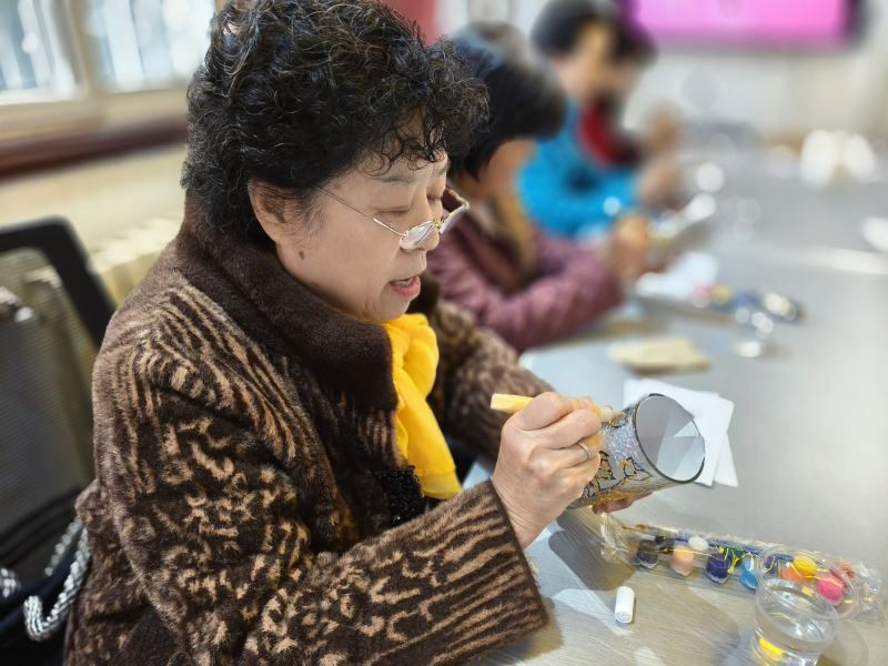 “自己选定想要彩绘的图案,把玻璃杯当做画布,就可以在其外侧勾勒轮廓了。”活动中,社区工作人员为大家讲解了手绘玻璃杯的技巧,并将玻璃杯调色、用笔、用色等方面技巧进行讲解后,大家便迫不及待地动手临摹起来。