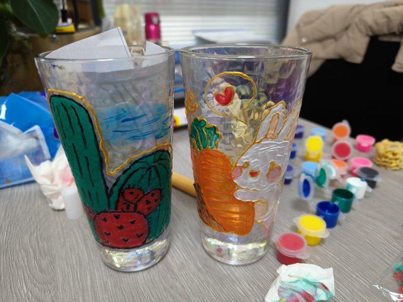 勾线、调色、上色、风干,原本空空如也的玻璃杯逐渐变得缤纷多彩,一幅幅花卉、动物图案等呼之欲出,一个个属于自己独一无二的限量款玻璃杯很快呈现在面前。大家拿着自己精心创作的杯子合影留念,留下满满的仪式感。