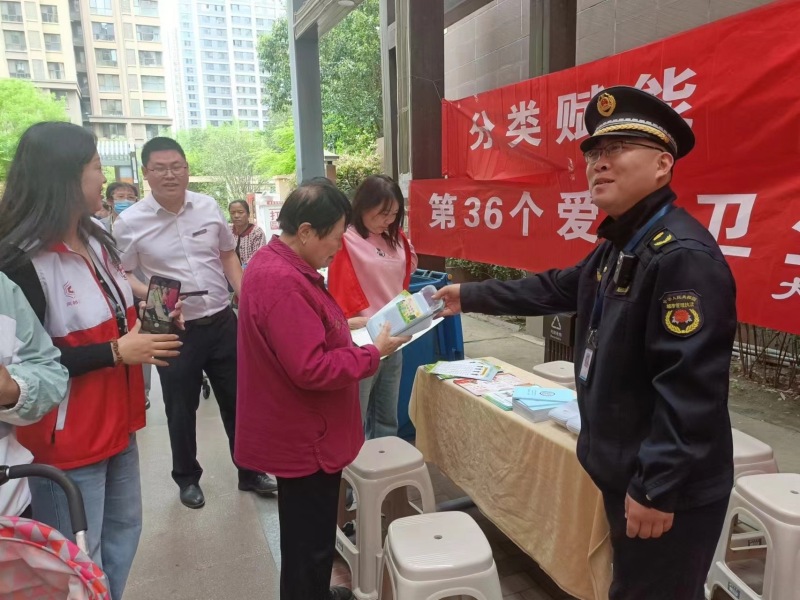 4月16日上午,大明宫街道开展第36个爱国卫生月宣传活动,街道组织城市综合管理办公室、大明宫铁路卫生服务中心在华远锦悦社区开展“健康城镇 健康体重”为主题的爱国卫生月专场宣传,同时联合执法中队及铁腕治霾办对垃圾分类、环境治理等方面共同宣传,营造全民参与共建的良好氛围,创造一个干净、舒适、宜居的生活环境。
