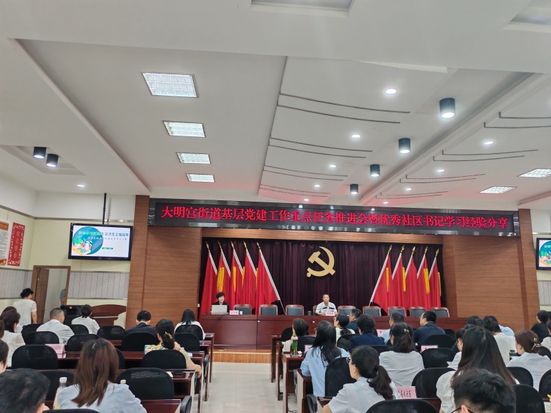 6月19日,大明宫街道召开党建重点任务推进会。街道领导班子成员、副科以上干部、各社区书记、副书记参加。首先时代社区书记、鼎新社区书记对赴重庆参加全省社区党组织书记示范培训班学习进行了交流分享。随后党建科负责人传达了《党建工作任务清单》、党纪学习教育相关工作要求。最后街道党工委副书记刘志军对下半年的党建工作进行了安排部署。