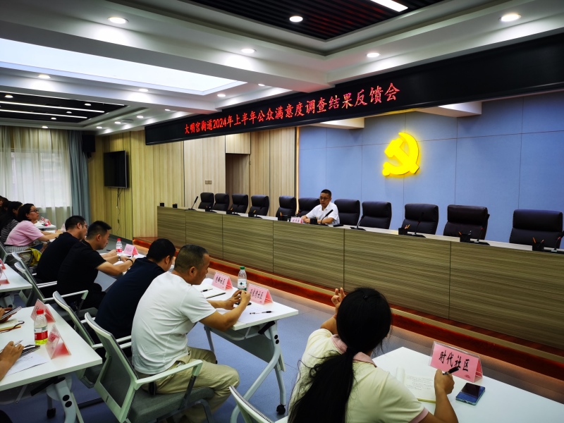大明宫街道15日下午召开2024年上半年公众满意度调查结果反馈会。刘志军同志主持。会议首先传达了《关于4起群众身边不正之风和腐败问题典型案例的通报》,随后安排部署了社区工会成立相关事宜,最后对上半年公众满意度调查反馈问题情况进行了通报。刘书记要求,各包抓科室,各社区要提高思想认识,压实履职责任,线上线下协同发力,加强宣传引导、紧盯时间节点、倒逼责任落实,持续推动改善养老、物业等领域群众急难愁盼问题,确保整改落到实处,为下半年满意度调查夯实基础。六办四中心、财政所、执法队、市场监管所负责同志,各社区负责同志参加。