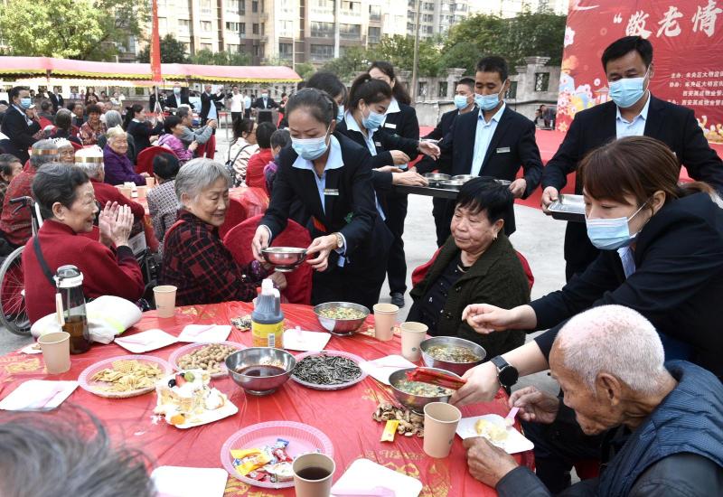 10月10日,大明宫街道东前进社区120多位老人欢聚一堂,共迎重阳佳节。