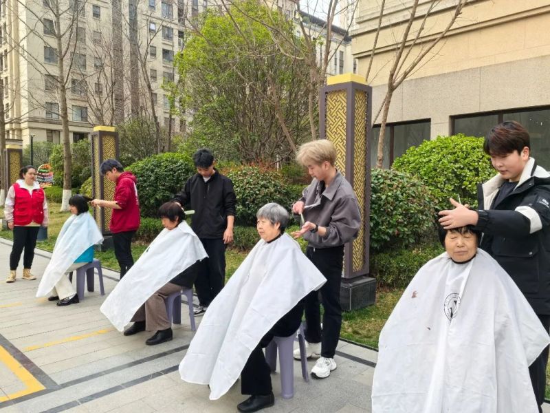 “咔嚓咔嚓……”伴着剪刀清脆的开合声,理发师们做好了理发前的各项准备工作便开始忙碌起来。“阿姨,您今天想换个什么样的发型呢?”,理发师细心地询问每位老人的需求,为他们设计合适的发型。