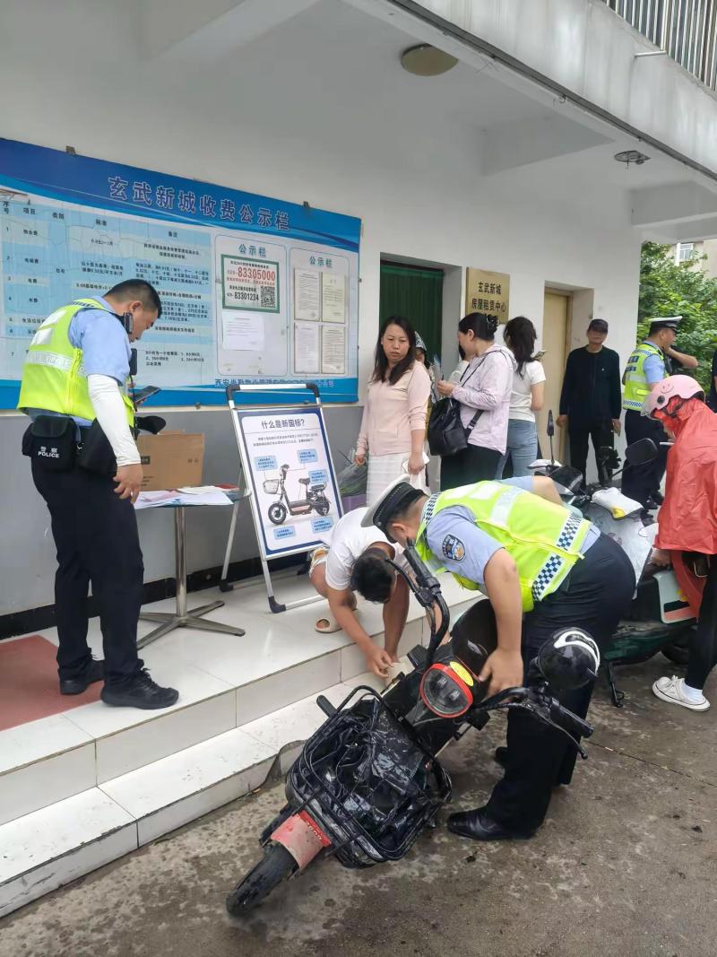 为进一步加强和规范电动自行车的道路交通管理,提高辖区居民的交通安全、文明出行意识,努力打通服务群众“最后一公里” 。5月30日上午,未央交警大队联合大明宫街道玄武新城社区,在玄武新城小区物业楼前开展了“电动自行车挂牌进社区”便民服务活动。