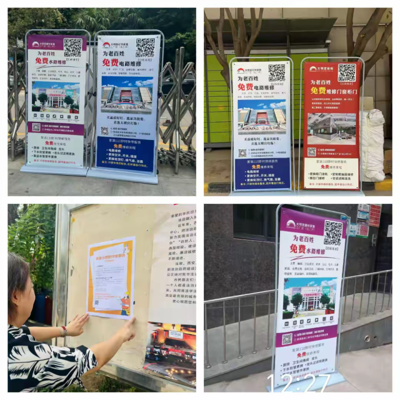 为推进城市社区嵌入式服务发展,让居民在家门口享受便利便捷服务,大明宫街道鼎新社区联合西安大明宫建材家居股份有限公司-家装110团队开展“家居维修进社区”活动,形成居民线上报修,团队上门维修一站式服务 。