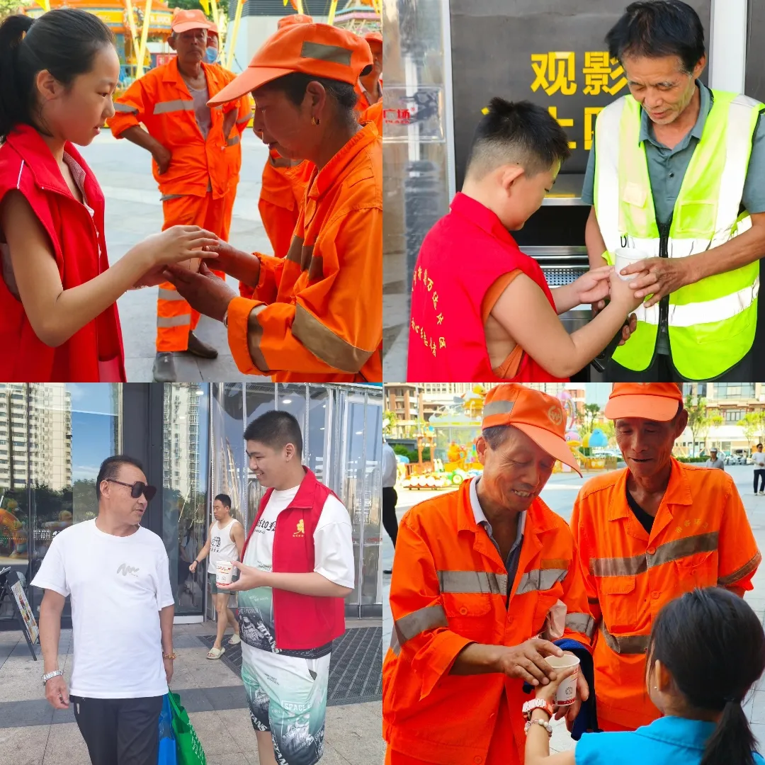 与此同时,为丰富小学生暑期实践经验,培养孩子们关爱他人、奉献社会的意识,社区精心组织了“小小志愿者”活动。在社区工作人员的带领下,孩子们为环卫工人及广场过往人员送上了精心熬制的绿豆汤。