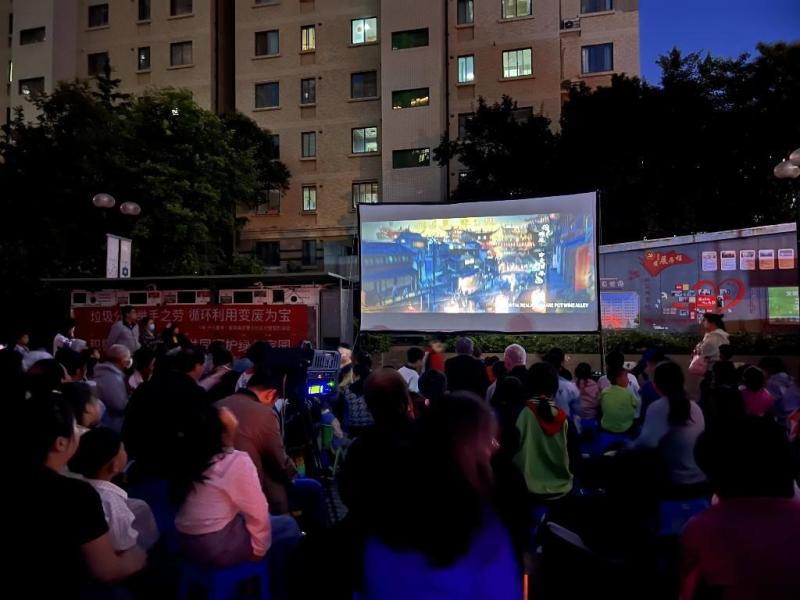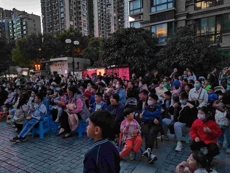 一位妈妈说:“社区为大家放电影真是太好啦!大家能轻松快乐地坐在一起看电影,真幸福。”