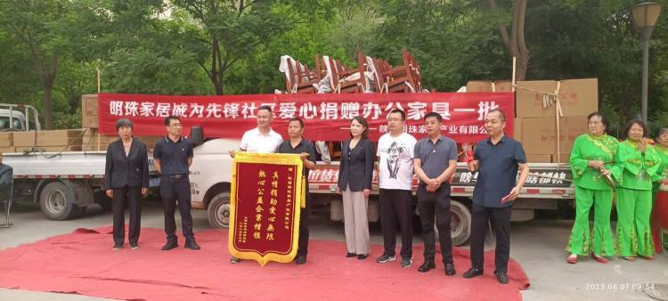 为了切实提升社区服务能力,更好发挥好社区党组织的作用,调动起社区工作者的积极性,2023年6月7日上午,陕西明珠家具集团为大明宫街道先锋社区捐赠一批办公桌椅,有效改善了社区办公条件。先锋社区党支部书记表示,将以这次赠送办公用品为契机,物尽其用,提高为民服务效率,增强为民服务履职能力,竭诚为社区居民服务。