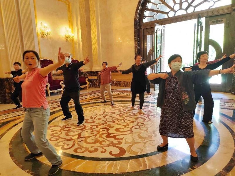 “ 八段锦”健身操课程中,老师将简单易学的保健运动引进社区。优雅仪态形体课程中,在专业老师的教导下,经过一遍遍地刻苦练习,居民们已经基本掌握了形体礼仪的基本要领,整个人精神焕发。