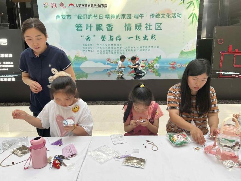 6月10日下午,未央区大明宫街道西派国际社区联合大明宫钻石店,举办“粽叶飘香,情暖社区”端午主题活动,用传统习俗凝聚邻里情感。