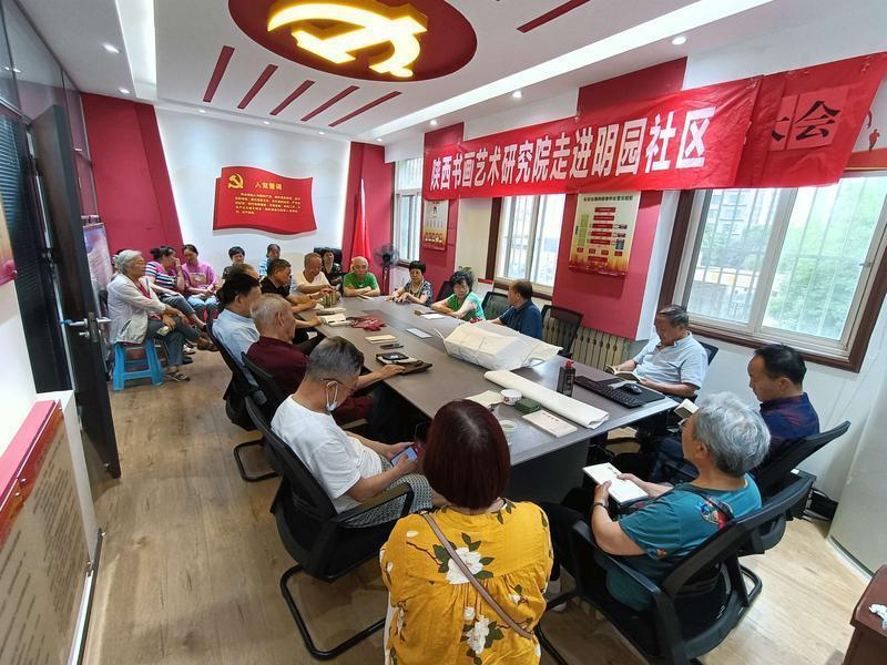 6月17日,未央区大明宫街道明园社区特邀陕西书画艺术研究院的书画家们来社区开展书画交流活动,与辖区爱好书画的居民一起创作,传承和发扬书法文化艺术,感受书法艺术魅力。