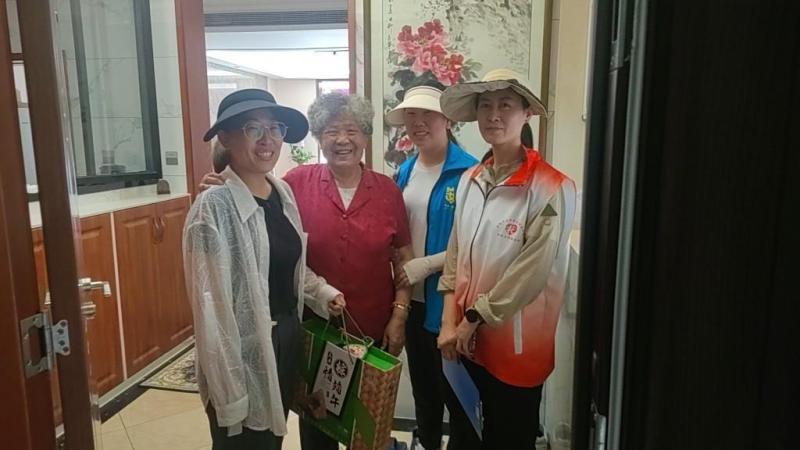 活动开始前,社区工作人员提着早早准备好的粽子、绿豆糕、香包、五彩绳,入户走访辖区65岁以上老党员、退役老兵、80岁以上独居老人,为他们送去节日的祝福和暖心的关怀。