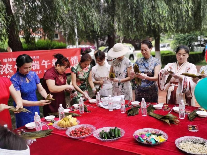 鼎新社区举办了“悦享浓情粽香,感悟端午文化”活动。邀请辖区居民、鼎新幼儿园小朋友,围坐在一起包粽子、做香囊。社区工作人员还将粽子,送到辖区特殊老人家中,与他们一起分享美味。