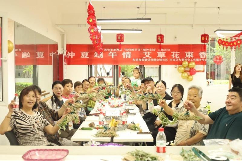 6月20日,在未央区大明宫街道雅荷社区、长安易居社区、保利樾公馆社区、鼎新社区里,居民们一起吟诵诗词、巧手做香包……用多种方式,迎接端午节。