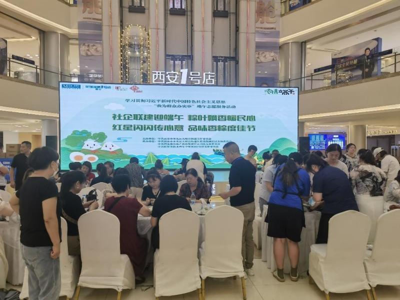 红星美凯城社区党支部联合红星美凯龙全球家居1号店党支部、西安摩尔农产品有限责任公司党支部,开展“社企联建迎端午 粽叶飘香暖民心”迎端午志愿服务活动。为居民义诊,就端午节有关的历史人文、民间风俗、垃圾分类常识、消防安全等内容进行了有奖问答。志愿者还带着大家,一起编花绳、包粽子。
