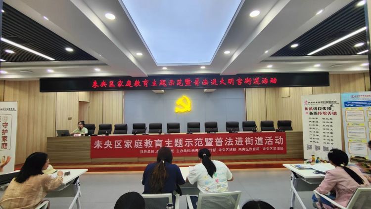 为贯彻落实习近平总书记关于“重视家庭建设,注重家庭、注重家教、注重家风”的重要指示精神,积极培育和践行社会主义核心价值观,引导广大家庭培育文明向上的家庭文化,形成良好文明风尚,7月4日下午由市妇联指导,未央区委宣传部、未央区妇女联合会、未央区教育局未央区司法局主办,在大明宫街道4楼会议室举办“家庭教育主题示范暨普法进街道活动”,大明宫街道办事处相关负责同志及辖区村社区妇联主席等40余人参加。