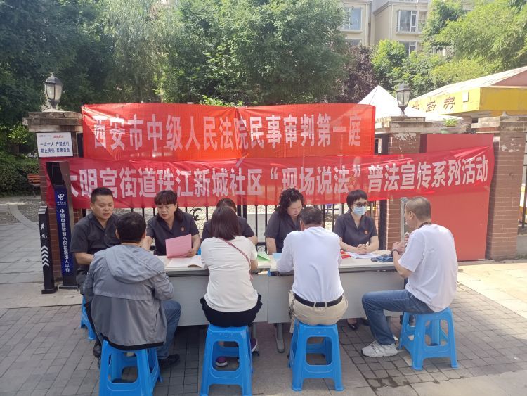 为更好地进行诉源治理,打造“无讼”社区,2023年7月4日上午,大明宫街道珠江新城社区联合西安市中级人民法院民一庭资深法官开展普法宣传和免费法律咨询活动,为更多居民排忧解难,提供法律服务和帮助。