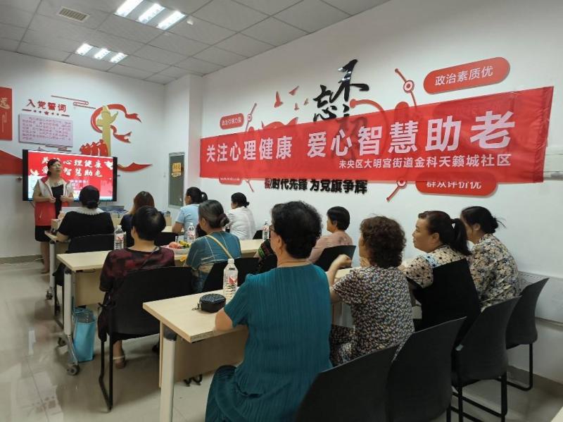 “漫漫人生路,最重是桑榆。” 7月5日,在未央区大明宫街道金科天籁城社区里,一场“关注心理健康,爱心智慧助老”心理健康讲座正在开展,引导老年人关注心理健康。