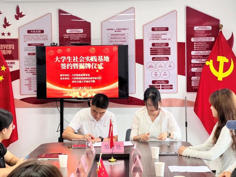 仪式开始,六村堡街道雨润星雨华府社区书记和西安交通大学城市学院团委负责同志发言,双方表示,将充分发挥各自的优势和特点,探索更多合作模式,为大学生社会实践创造更多机会,推动社区与高校的共同发展;随后校社双方签署《大学生社会实践基地共建协议书》,携手为“大学生社会实践基地”揭牌。
