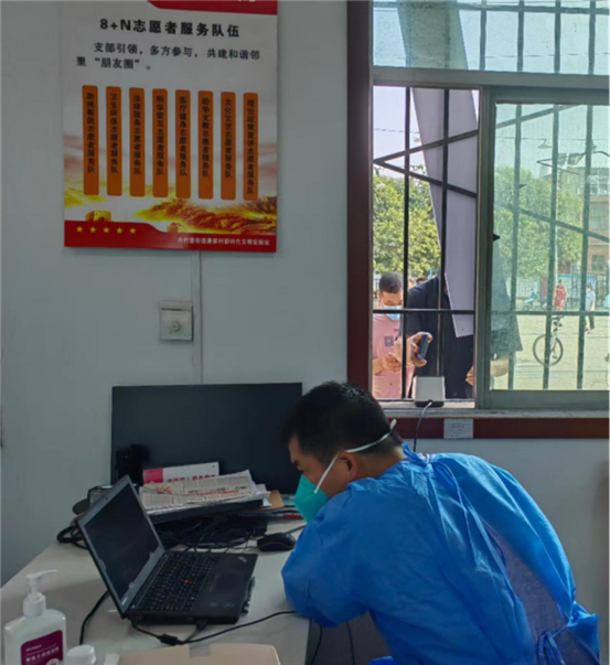 唐家村驻村干部区行政审批服务局曹振锋参加全员核酸检测工作,负责身份核验