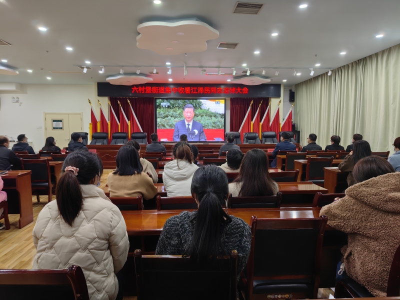 12月6日,六村堡街道组织机关全体干部集中收看江泽民同志追悼大会直播,大家认真聆听了习近平总书记所致悼词,深切哀悼江泽民同志。