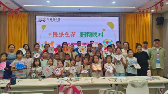 8月20日上午,谭家街道文景东区社区与西安图书馆联合推出“废纸生花·旧物焕时”亲子环保时钟手工坊活动,以创意实践推动环保理念走进家庭,开启一段绿色而温暖的亲子之旅。