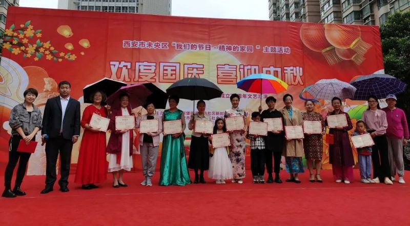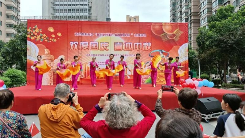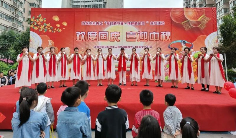 浓情中秋,月满国庆。为热烈庆祝中华人民共和国成立74周年,进一步弘扬中华优秀传统文化,丰富居民的精神文化生活,构建和谐邻里关系,营造其乐融融的节日氛围,9月23日,张家堡街道永嘉社区新时代文明实践站开展"我们的节日•精神的家园"主题活动——欢度国庆、喜迎中秋文艺汇演。辖区内各小区文艺团队、党员志愿者、现场居民观众共300余人欢聚一堂,共迎“双节”,共享这场精神文化盛宴。