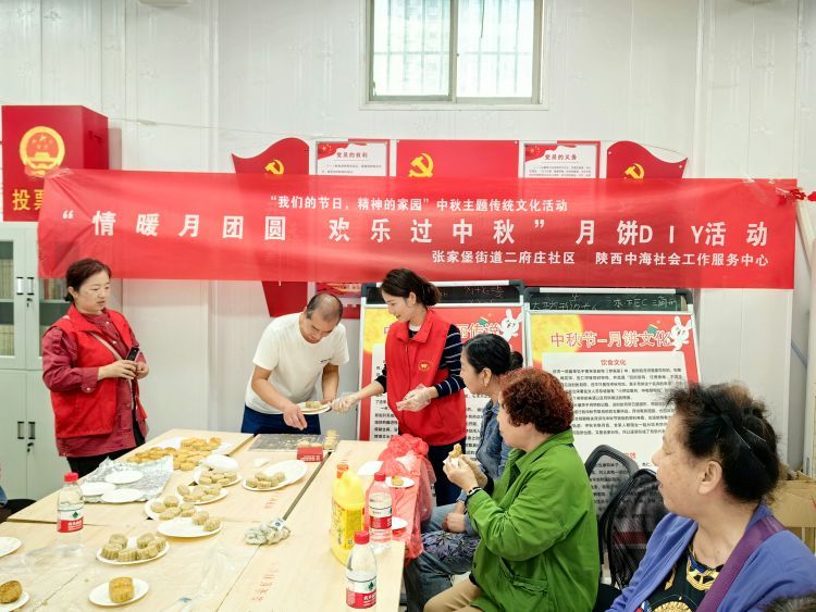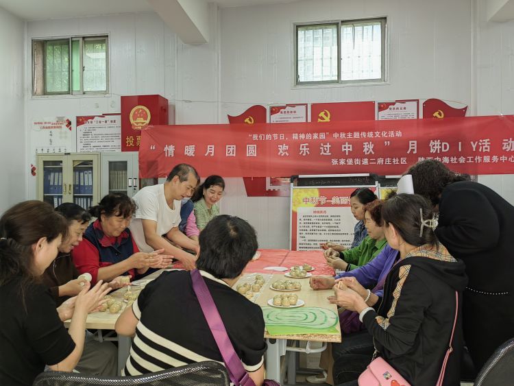 为大力弘扬传统文化,深入挖掘传统节日丰富内涵,值此双节到来之际,张家堡街道二府庄社区党总支、二府庄社区居委会、二府庄社区文明实践站共同举办了“情暖月团圆·欢乐过中秋”月饼DIY活动。
