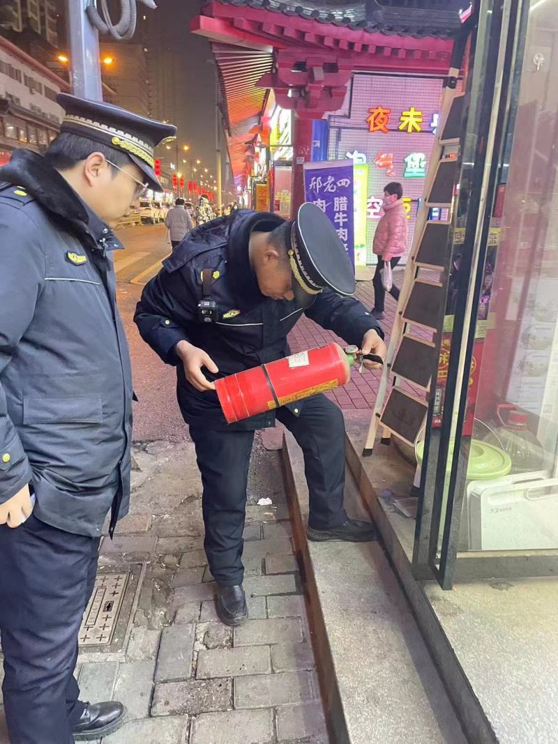 2024年2月26日,张家堡执法中队对辖区龙首商业街门店进行消防安全检查,共排查门店92家,督促商户定期检查灭火器,确保灭火器正常使用。