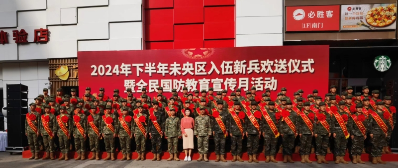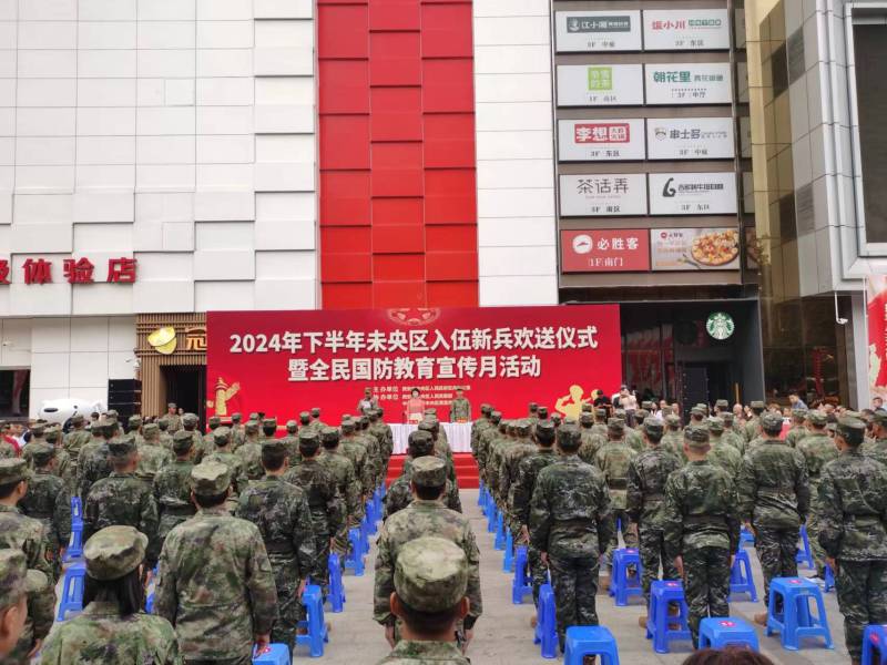 2024年9月14日上午,未央区人民武装部在张家堡街道辖区盛龙广场举行2024年下半年未央区新兵欢送仪式暨全民国防教育宣传月活动。