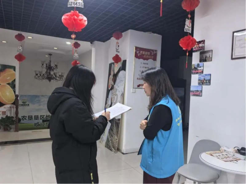 在志愿者线下广泛宣传的基础上,作为基层治理“神经末梢”的网格员通过社区居民微信群、网格管理群等线上平台,推送禁燃禁放政策解读、安全提示和典型案例。通过线上宣传快速覆盖了更多居民,特别是年轻群体,方便居民转发分享。与此同时,针对社区内的商铺特别是可能销售烟花爆竹的店铺,网格员们逐一上门宣传走访,与商铺签订禁燃禁放承诺书,详细讲解烟花爆竹禁售政策。网格员还对商铺的消防设施进行了检查,提醒商户加强冬季消防安全管理,确保消防通道畅通、消防器材完好有效。