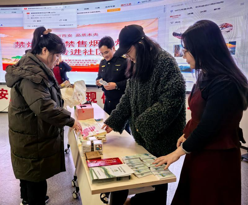 12月18日,在西安市智慧环保综合指挥中心联合西安市生态环境局未央分局、走进谭家街道文景社区开展的“培育生态文明素养 建设美丽西安”禁售禁放烟花爆竹宣传活动中,工作人员采用“政策解读+科普讲座+趣味互动”相结合的方式,将环保理念精准送达居民身边。