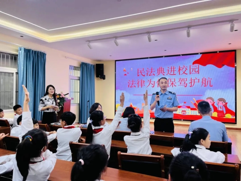 讲座中,陕西云善律师事务所潘莉律师围绕《中华人民共和国民法典》简介、在法律上你属于什么人、《民法典》如何守护我们三个方面的内容,结合小学生的实际特点,以通俗易懂的语言深入浅出的讲解了如何运用《民法典》保护自己的合法权益,帮助同学们全面了解这部生动的生活百科全书。有奖问答环节中,同学们参与热情高涨,大家积极踊跃回答问题,现场气氛热烈,体现了较好的普法效果。汉城司法所负责人围绕“如何应对校园欺凌”等问题进行了法律知识宣讲,引导学生提高自我保护防范意识,勇于向校园欺凌说“不”。
