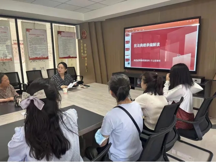 2025年5月是全国第五个“民法典宣传月”。为进一步提升社区居民的法治观念,加强辖区居民对《中华人民共和国民法典》的关注和了解,增强法律意识、自觉维护合法权益,5月20日上午,西安市未央区徐家湾街道西航第一社区携手陕西启坤律师事务所于沁菲律师,共同开展题为《民法典继承编解读》普法讲座,为辖区干部群众送上了一场兼具理论深度与实践特色的法治盛宴。