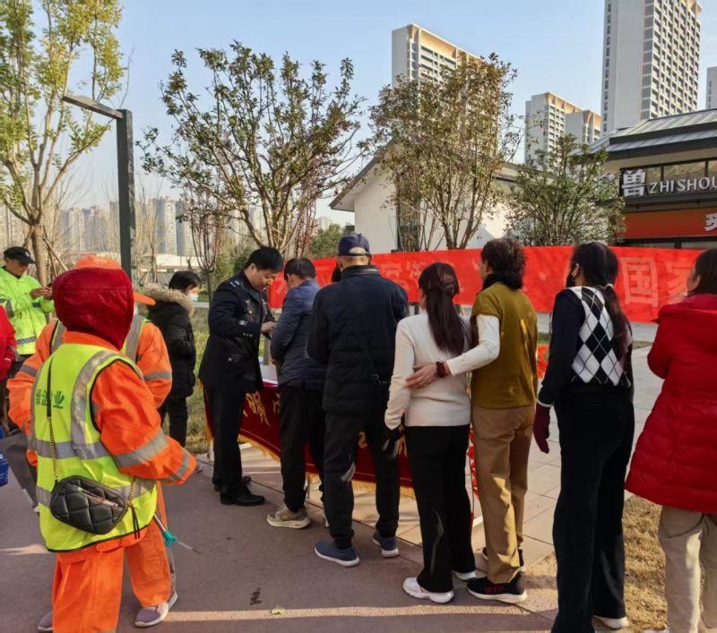 2025年12月4日上午,在第十二个国家宪法日到来之际,未央区司法局大明宫司法所联合街道平安办将法治宣传搬进红旗铁路公园,以群众喜闻乐见的形式开展宪法宣传日活动,让宪法精神走出书本、融入生活,为冬日的公园增添了浓厚的法治暖意。
