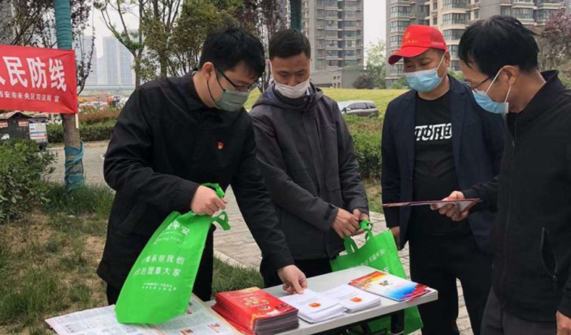 4月15日,草滩司法所联合草滩街道办事处平安建设办公室、陕西云善律师事务所在辖区长乐广场开展“4·15”全民国家安全教育日宣传活动。草滩街道党工委书记田鹏军到场指导,耐心向现场群众宣讲国家安全法相关内容,并对普法宣传活动中如何落实好疫情防控各项措施提出了具体要求。草滩司法所、平安建设办公室和云善律师事务所工作人员在严格落实疫情防控各项规定的前提下向过往群众讲解相关法律知识,发放宣传资料和部分防疫用品。此次宣传活动涉及小区居民、环卫工人、路过群众等共约210余人,发放各类宣传资料和防疫用品1260余份。