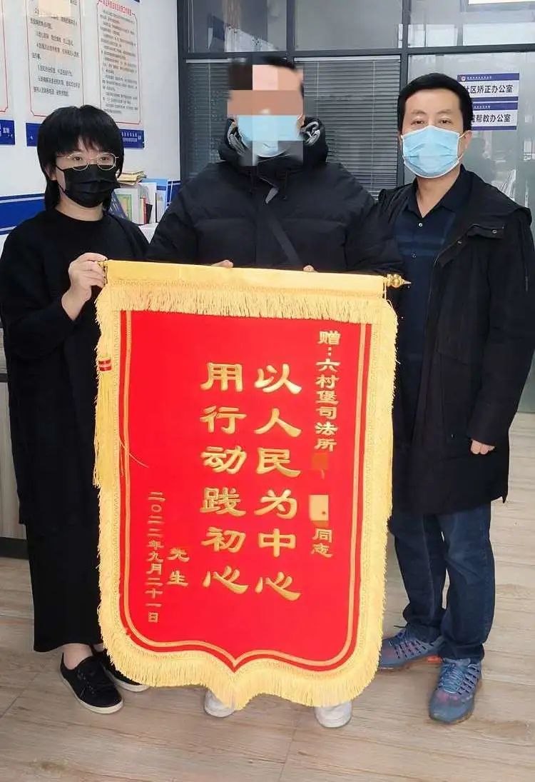 10月8日上午,社区矫正解矫对象高某某将一面印着“以人民为中心 用行动践初心”的锦旗赠送给六村堡司法所,感谢司法所工作人员在其矫正期间所给予的悉心矫正和真情关怀。