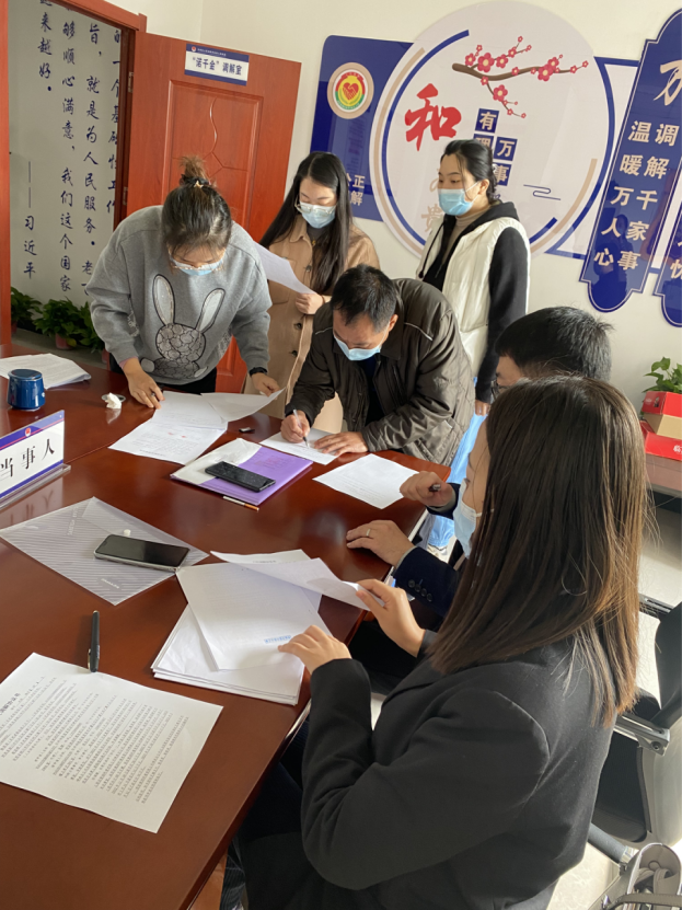 在调解室,调解员组织双方进行了深度调解,以朴素接地气的“大白话”,通过情理感化和法律层面条分缕析,疏通当事人心结,最终双方达成调解协议。随后,调解员第一时间联系对接未央宫法庭,在法庭法官团队全流程指导下完成了司法确认,确保纠纷高质效化解。
