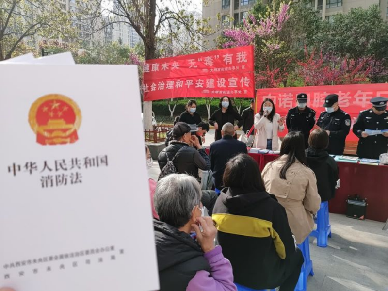 为做好辖区防范火灾安全工作,增强群众消防安全和法治观念,营造安全稳定的社会环境,3月29日,未央区司法局大明宫司法所联合区禁毒办、区限养办、陕西众邦律师事务所走进华远君城社区,开展普法宣传活动。