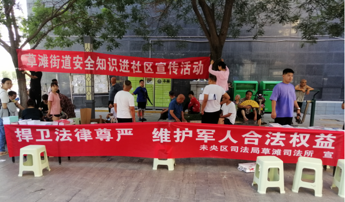 军人是维护国家安全的钢铁长城,依法维护军人军属合法权益,为部队官兵解除后顾之忧,是人民司法肩负的重要职责。正值全国庆祝第96个“八一”建军节之际,8月4日上午,未央区司法局草滩司法所走进驻地社区开展“捍卫法律尊严,维护军人合法权益”普法宣传活动,为驻地军人军属及退役军人送上节日的问候。