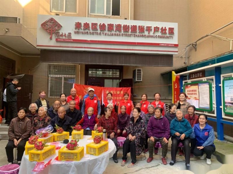 10月23日下午,徐家湾街道张千户社区联合志愿者服务队开展了以“九九重阳·久久相伴”为主题的重阳节活动,为辖区内30余名80岁以上高龄老人筹备举办了一场热闹非凡的聚会。活动现场还为老人发放水果等慰问品,让老人感受到社区大家庭的温暖和关怀。