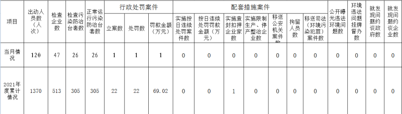 西安市生态环境未央分局环境执法工作动态信息统计表(2021年10月)