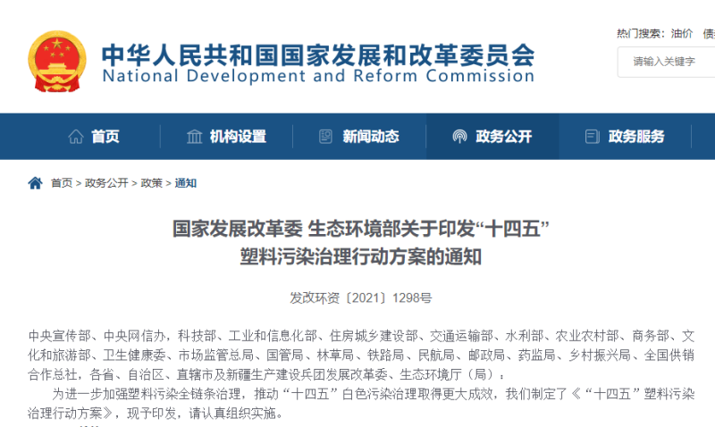 当前,我国在塑料污染治理方面已取得初步成效。近日,国家发展改革委、生态环境部印发《“十四五”塑料污染治理行动方案》,又进一步完善了塑料污染全链条治理体系,细化了塑料使用源头减量,塑料垃圾清理、回收、再生利用、科学处置等方面部署,推动塑料污染治理持续深入。