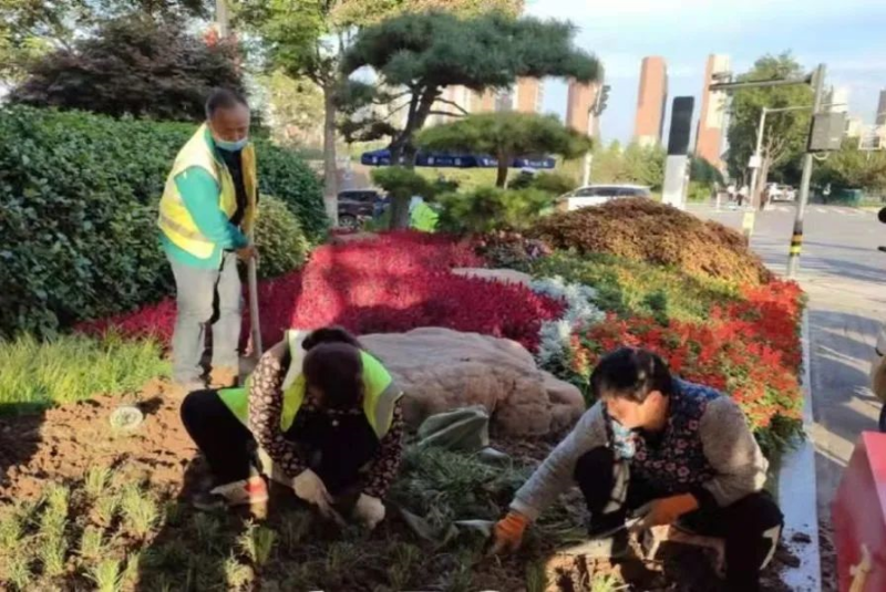 对凤城五路广场、辛家庙广场等个别裸露部位补栽麦冬;