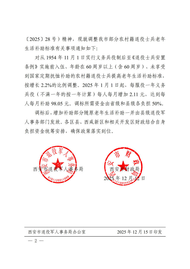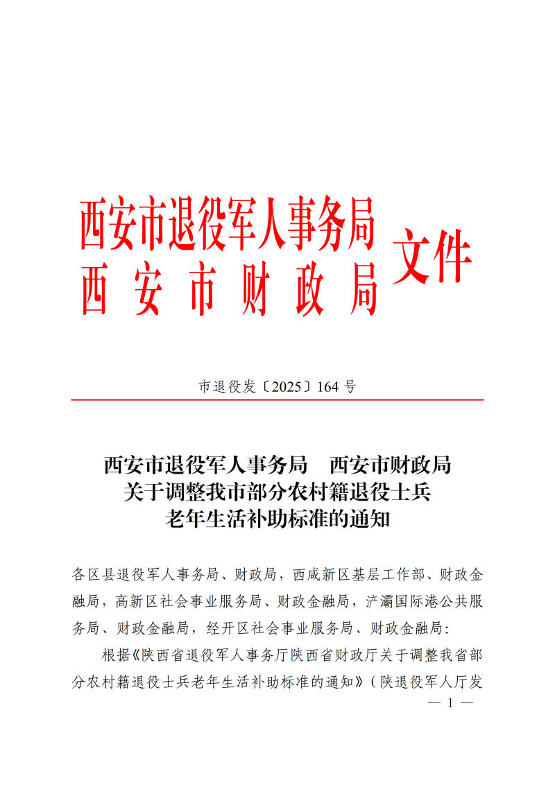 西安市退役军人事务局西安市财政局关于调整我市部分农村籍退役士兵老年生活补助标准的通知