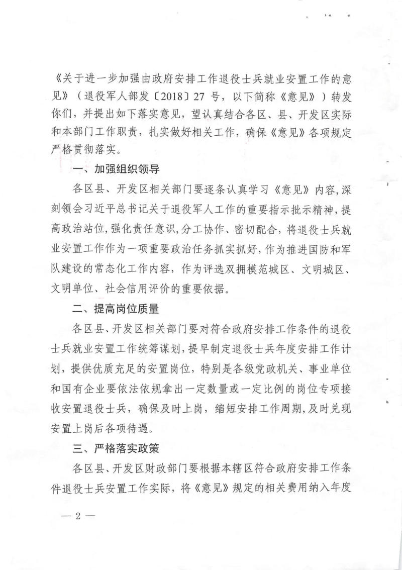 关于转发退役军人事务部 中共中央组织部等十部委《关于进一步加强由政府安排工作退役士兵就业安置工作的意见》的通知
