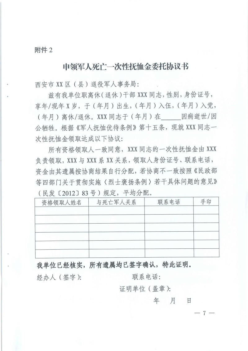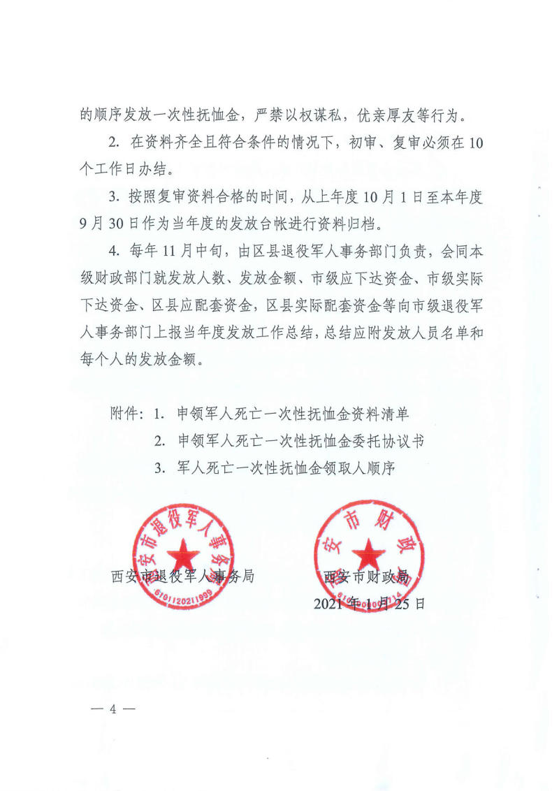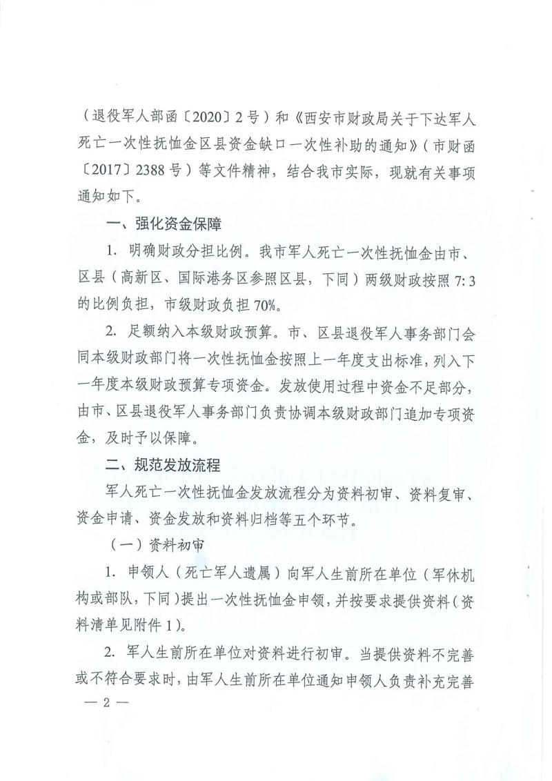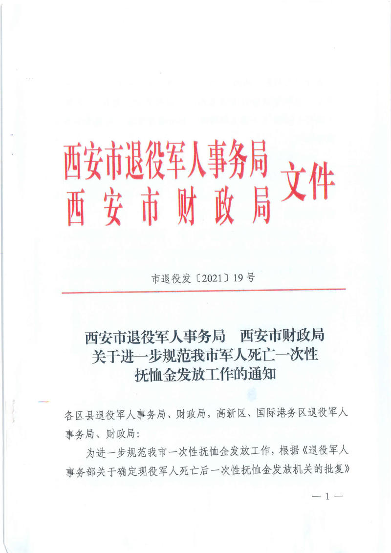 西安市退役军人事务局 西安市财政局关于进一步规范我市军人死亡一次性抚恤金发放工作的通知
